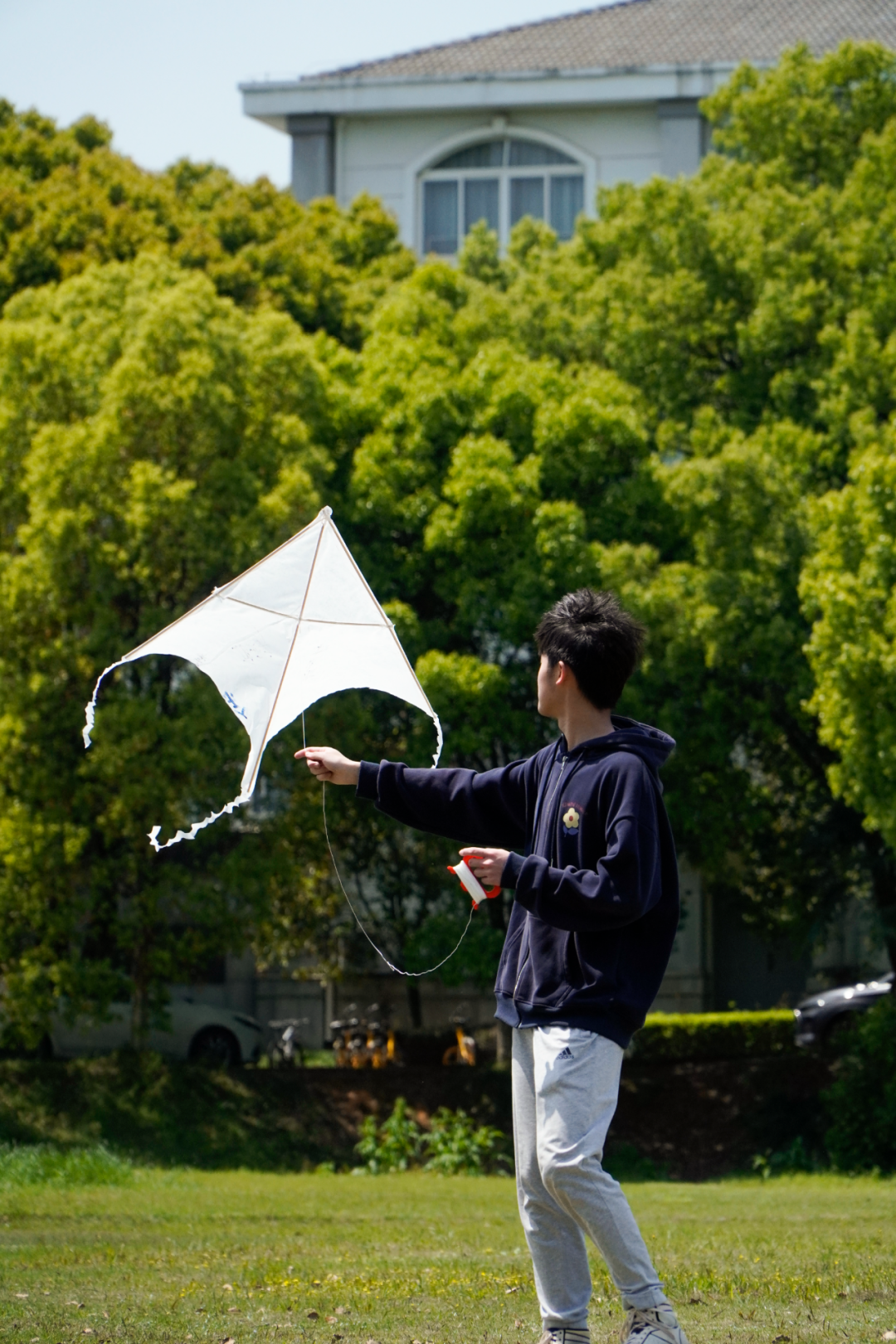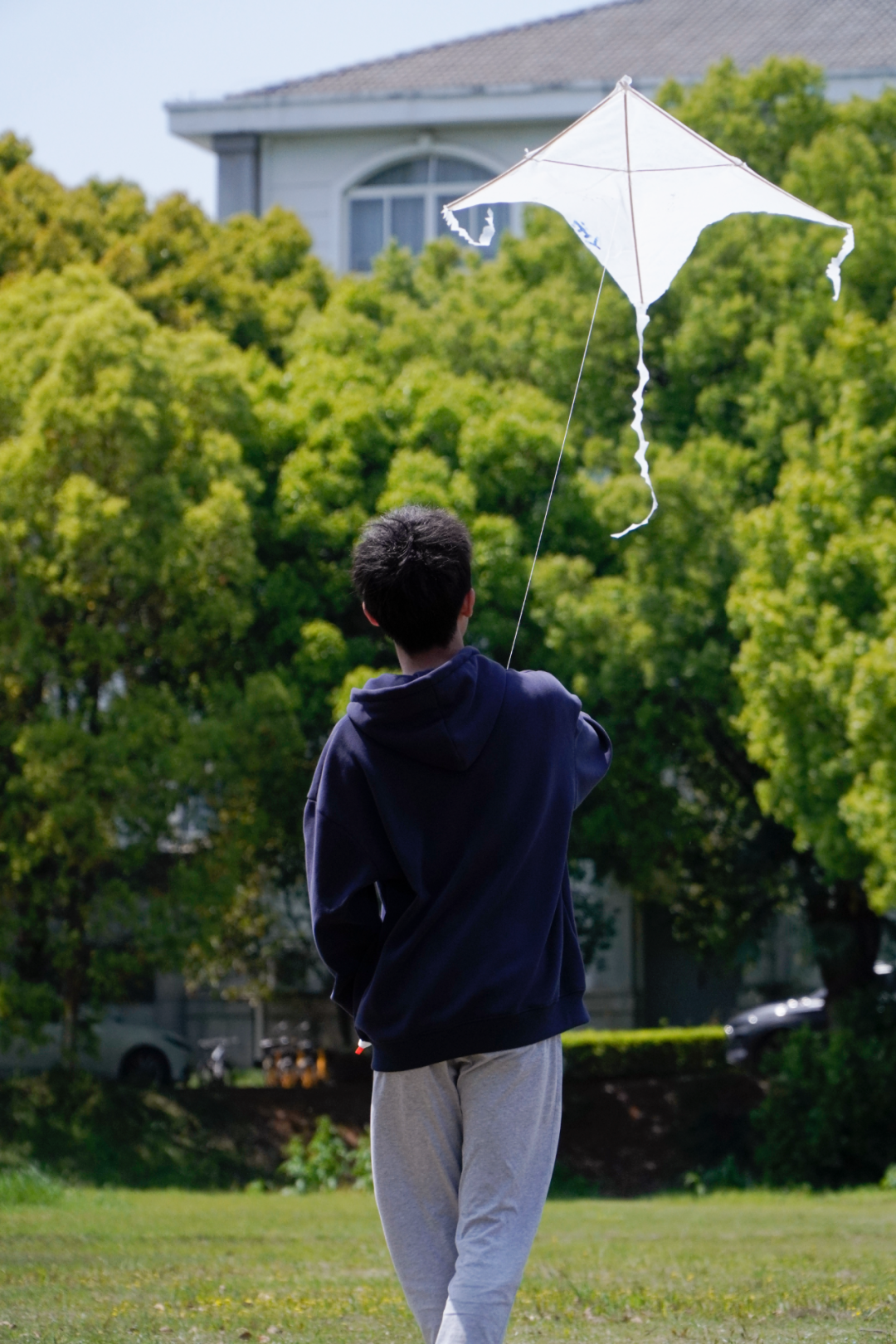 天色湛蓝,云朵慵懒几纸风筝张开双翼,乘风而上细线飘摇,风筝舞动,脚步匆忙,人头攒动欢声笑语从绿草坪蔓延至天空