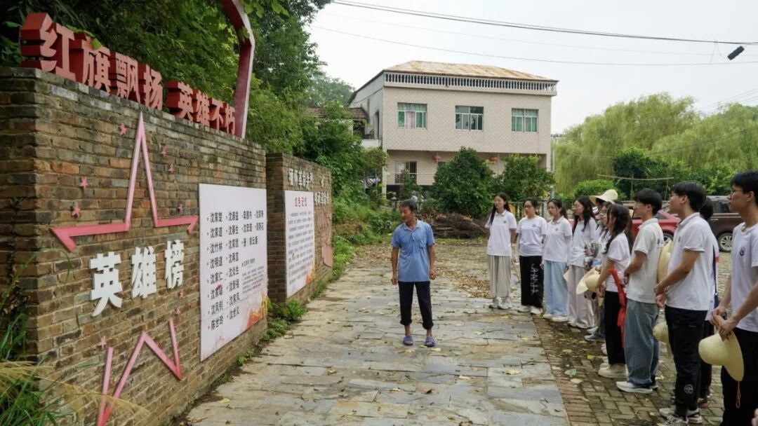 实践首站,队员们来到湖口县流芳乡沈添字湾的革命烈士英雄墙。在庄严肃穆的氛围中,老党员周伦华深情讲述了烽火岁月里先烈们的英勇事迹。当听到沈明道烈士面对敌人屠刀,凛然高呼“共产党万岁”而壮烈牺牲时,队员们无不为之动容,现场一片寂静,唯有崇敬与哀思在胸中激荡。先烈们宁死不屈的英勇气节,深深震撼了每一位队员的心灵,使大家对信仰的力量有了更为真切的体会。