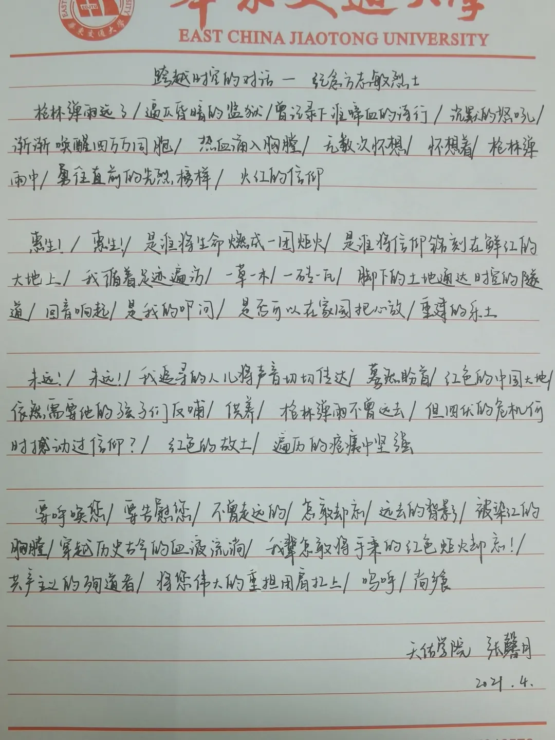 “天佑学子”张馨月写下的一封给方志敏烈士的书信
