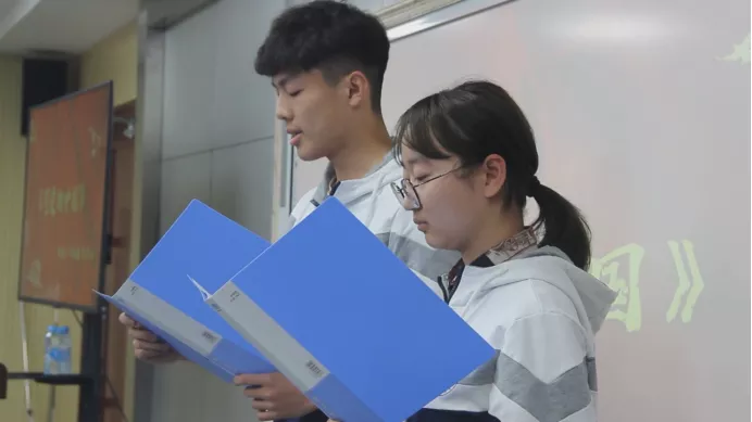 曹亚诺(右)与何政毅(左)诵读《可爱的中国》