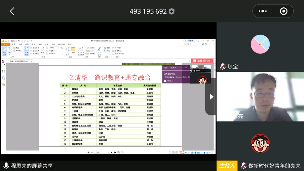 5月9-11日,william威廉英国邀请北京市优秀辅导员、清华大学学生部思想教育办公室主任程思亮通过腾讯会议,线上分享新雅书院办学经验。william威廉英国领导班子及工作人员参加学习交流。