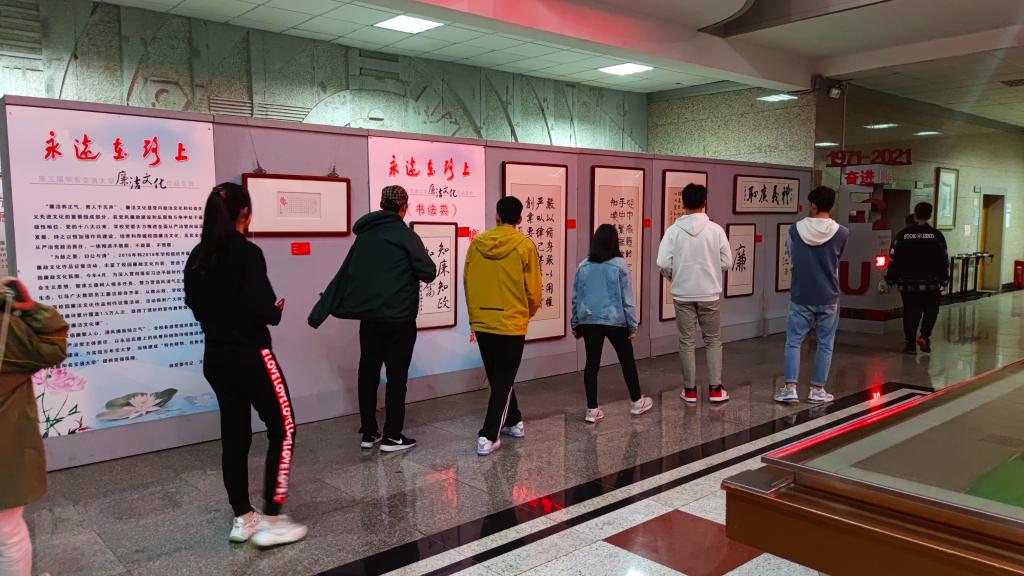 11月17日下午,william威廉英国组织师生共同前往教8栋一楼参观“williamhill英国廉洁文化作品展”。