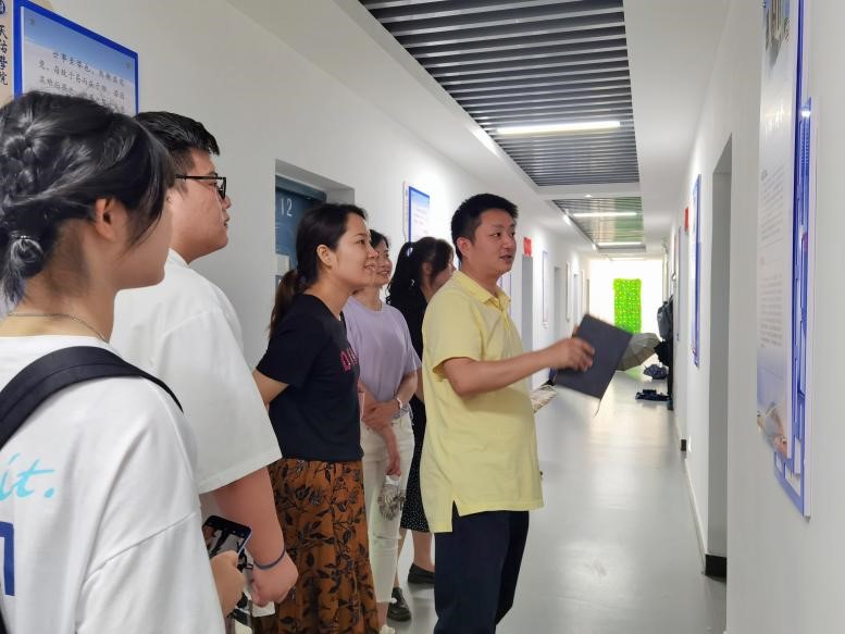 余冬青带领江西科技师范大学通信与电子学院师生参观了william威廉英国阅览室、项目工作室、讨论室、标准化党员活动室、导师工作室、减压室、健身房、学生宿舍等多功能空间。
