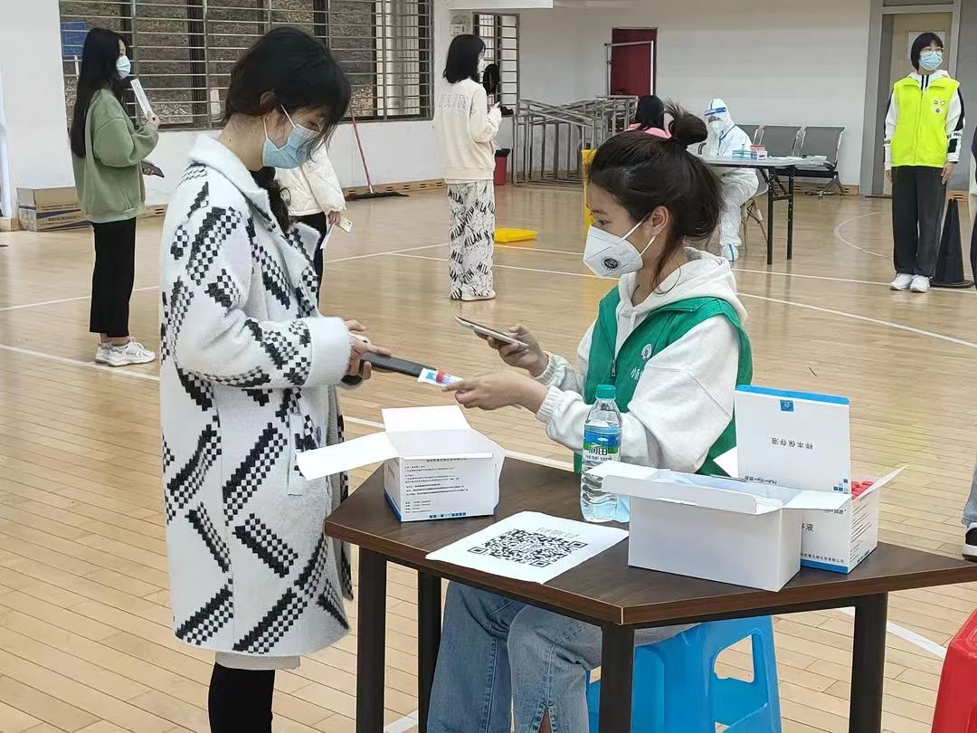 “天佑学子”在全员核酸检测现场参与志愿服务。