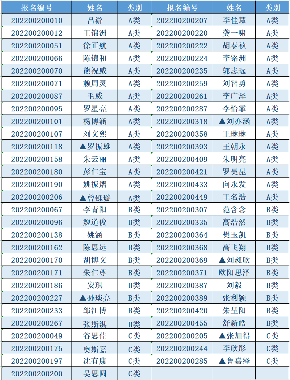 备注:▲标注为绿色通道入选考生。