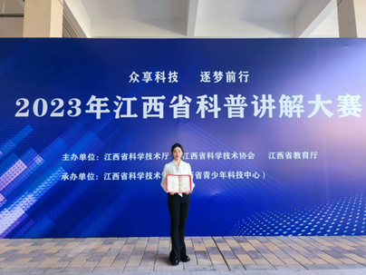 5月7日,我院2022级“天佑学子”刘昶欣同学代表学校参加“众享科技 逐梦前行”为主题的2023年江西省科普讲解大赛。刘昶欣同学获得2023年江西省科普讲解大赛三等奖,被授予“江西省优秀科普使者”称号。比赛中刘昶欣用科学准确的内容,生动有趣的语言,声情并茂的解说方式为大家讲解了AIGC的定义、运行原理和可运用场景,展现了“天佑学子”的良好风采。