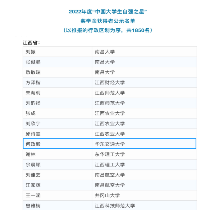 8月20日,由共青团中央、全国学联指导,中国青年报社、新东方教育科技集团、中国青年创业就业基金会联合举办的2022年度“中国大学生自强之星”奖学金评选活动结果揭晓。“天佑学子”何政毅同学荣获2022年度“中国大学生自强之星”奖学金。