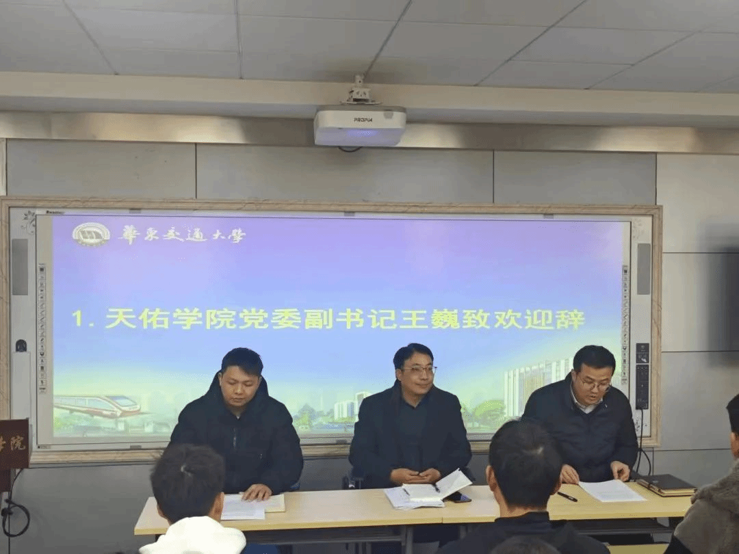 会议的第一项议程是由学院党委副书记王巍致欢迎辞,表达对学院常务副院长汤兆平教授到来的欢迎。