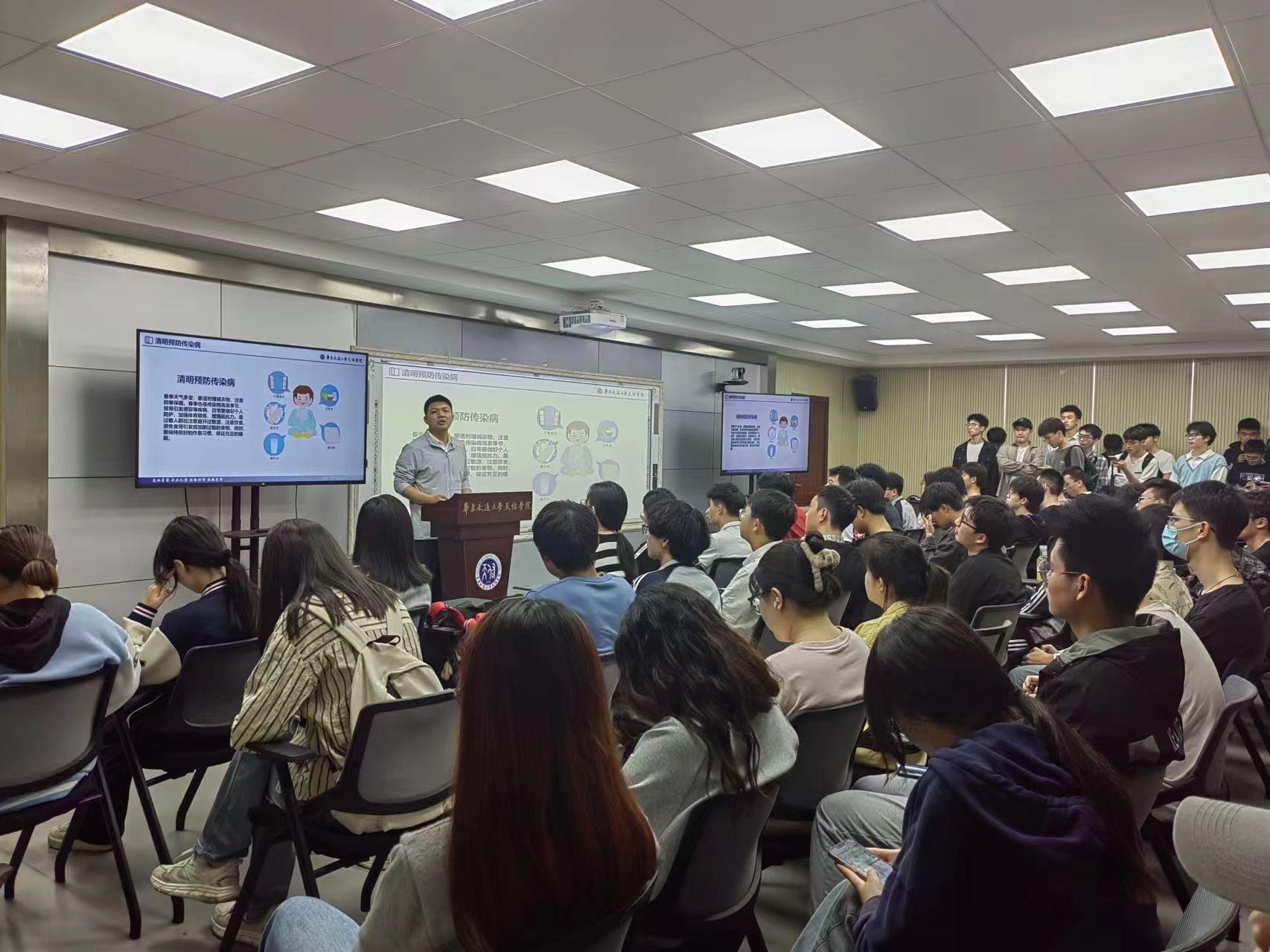会上,肖老师从清明文明祭祀、食品安全、预防传染病、安全出游、预防溺水、网络安全、寝室安全、居家安全等多个方面进行了安全提醒。他提醒同学们注意春季多风干燥,是森林火灾高发时期,墓地祭扫时要遵守各地森林防火禁火相关规定,积极选择文明、绿色、安全的祭扫方式;春季也是传染病高发季节,容易引发感冒等疾病,日常要注意饮食、做好个人防护,加强体育锻炼,增强抵抗力;他还提醒同学们要充分认识溺水事故的危害性,牢记防溺水“六个不准”,远离水塘、水渠、河流、水库等危险地段,不玩水、不戏水,防止溺水落水等意外事故发生。同时,针对电信网络诈骗屡屡发生的情况,他提醒同学们要增强网络防护意识,严防各种形式的网络诈骗等。对于留校在宿舍同学,他还提醒同学们要自觉遵守学校规定,注意寝室卫生,切忌私接电线;尤其不要在宿舍内吸烟、使用大功率电器,做到人离开寝室断电锁门等等。
