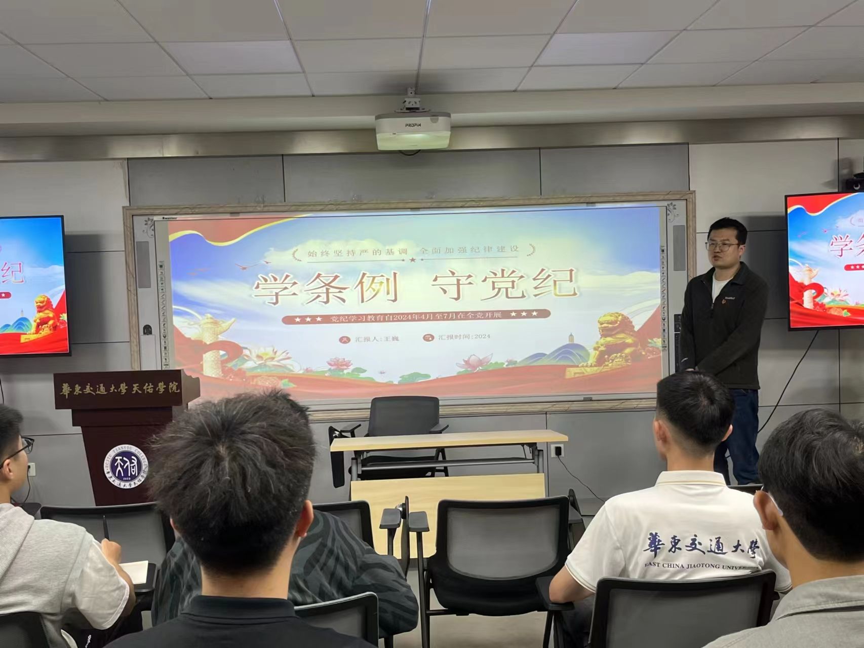 支部书记王巍首先传达了习近平总书记关于党纪学习教育的重要讲话和重要指示精神、中央党的建设工作领导小组会议精神及省委常委会会议精神和校党委书记柳和生在学校党纪学习教育动员大会上的讲话精神,并对党支部开展党纪学习教育的学习计划做了说明,也对学习提出了明确的学习要求。