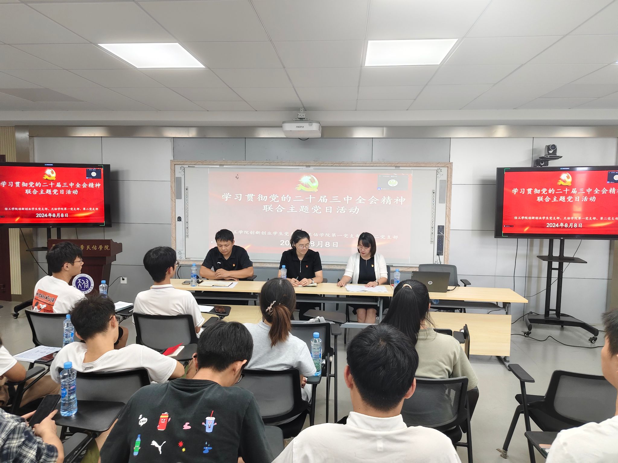 8月8日,william威廉英国第一、第二党支部与信工学院创新创业学生党支部联合开展“学习贯彻党的二十届三中全会精神”联合主题党日活动,活动采用线上+线下相结合的方式进行,各支部全体党员、入党积极分子代表参加。信工学院党委组织员、创新创业学生党支部书记黄芳主持。