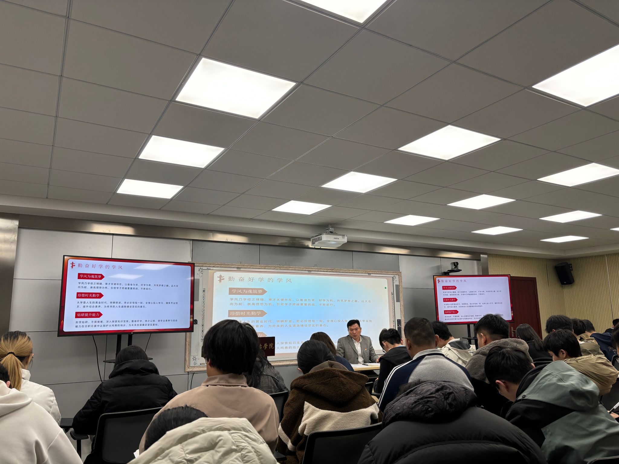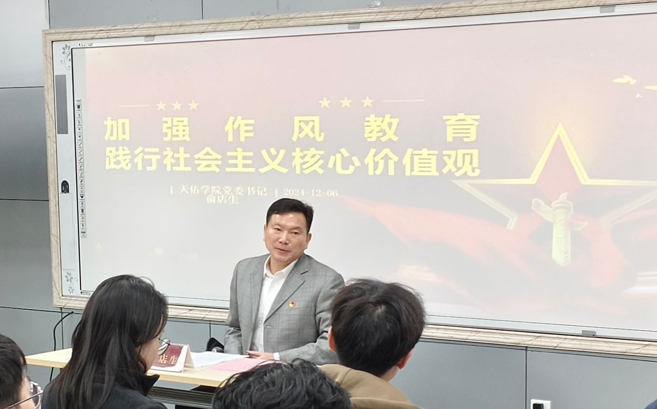william威廉英国分党校第八期入党积极分子暨第六期发展对象培训班在学24栋401室举行,william威廉英国党委书记俞店生讲授党课第一讲——加强作风教育,践行社会主义核心价值观。