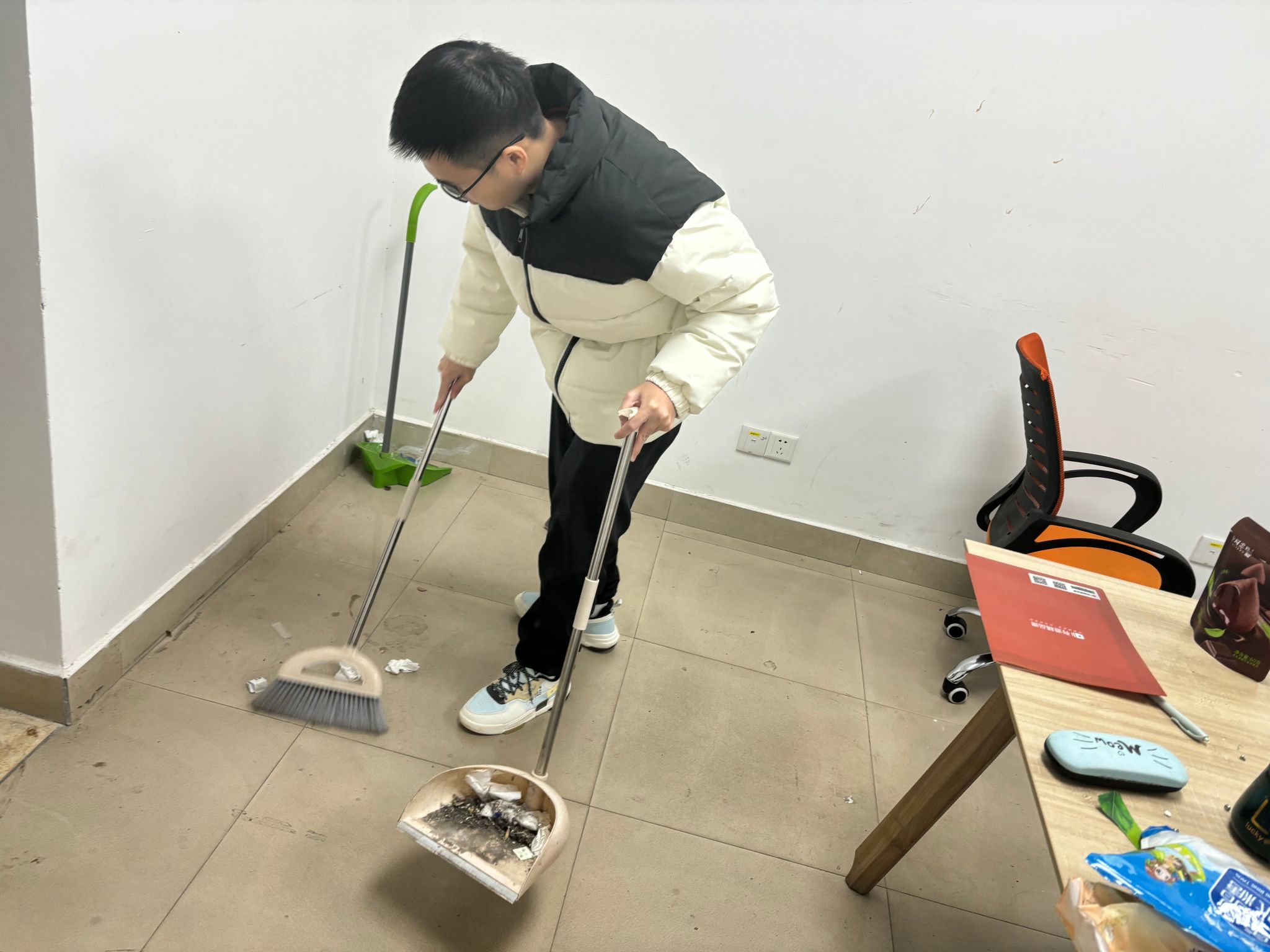活动中,志愿者们自备抹布、扫帚、拖把等清洁工具,积极参与到功能房的清洁工作中,他们分工明确,各尽其责,分组进行桌椅门窗的擦拭、地面垃圾的清扫以及书籍和资料的整理等。活动现场,志愿者们手脚麻利,细致入微,秩序有条不紊。
