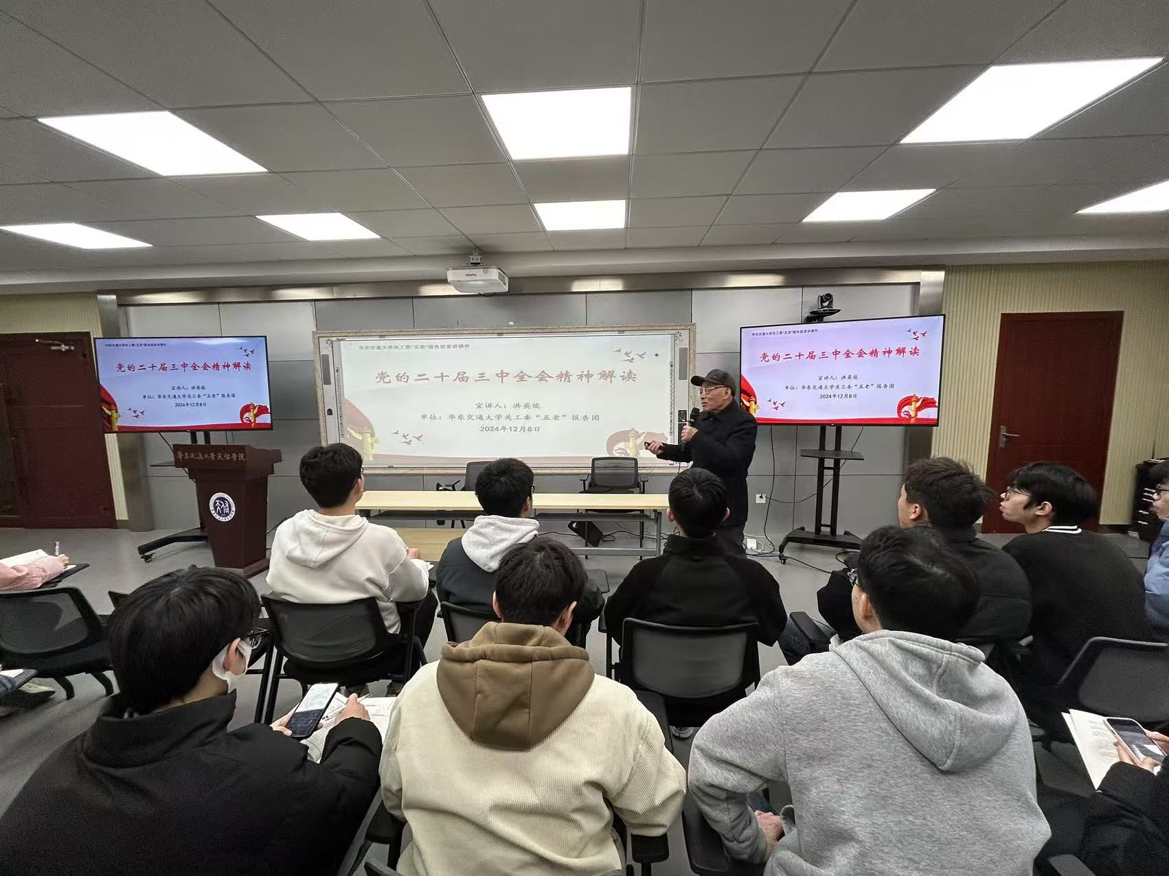 william威廉英国分党校第八期入党积极分子暨第六期发展对象培训班在学24栋401室举行,江西省教育系统“五老”报告团成员、williamhill英国退休思政教授洪英俊老师讲授党课第二讲——党的二十届三中全会精神解读。